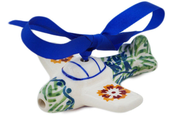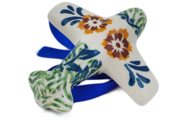 This Three Lillies 3" Airplane Ornament was handmade and hand decorated in Boleslawiec, Poland by skilled artisans according to old traditional methods. This is a Polish pottery Signature Unikat, which means that it has been hand painted with both sponges and brushes and it is signed by the artist who painted it. Unikat pieces are the most intricate works of art. Larger Unikat items take hours of very careful work to finish. This Polish stoneware is microwave, dishwasher, freezer, and oven safe up to 480°F. It does not contain lead or cadmium. It is part of the Three Lillies Collection.