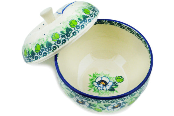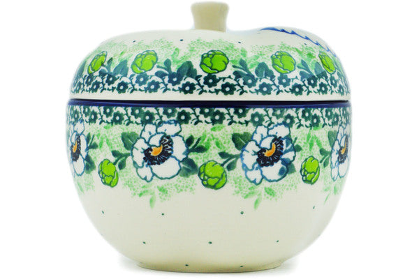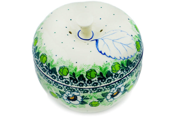 This Green Flora 5" Apple Shaped Jar was handmade and hand decorated in Boleslawiec, Poland by skilled artisans according to old traditional methods. This Polish stoneware is microwave, dishwasher, freezer, and oven safe up to 480°F. It does not contain lead or cadmium. It is part of the Green Flora Collection.