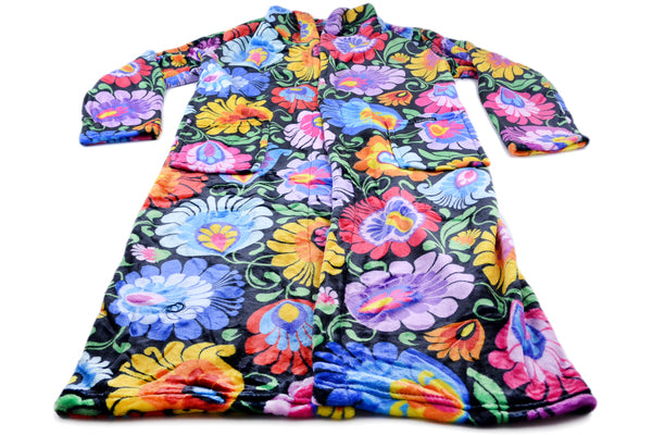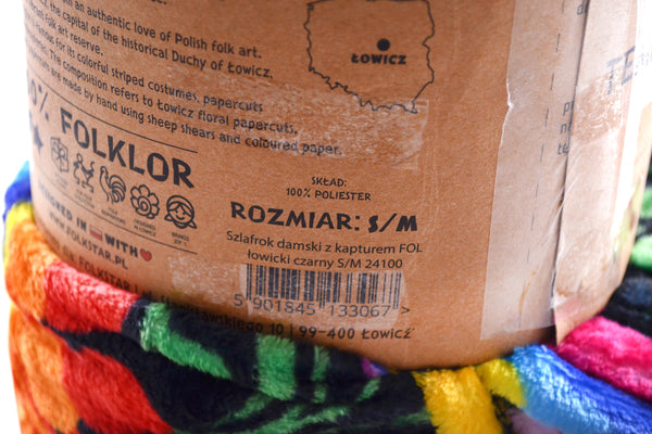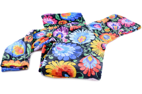 This Black 56" Bathrobe size S/M was handmade and hand decorated in Boleslawiec, Poland by skilled artisans according to old traditional methods. This Polish stoneware is microwave, dishwasher, freezer, and oven safe up to 480°F. It does not contain lead or cadmium. It is part of the Black Collection.