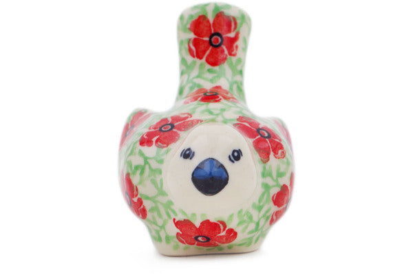 This Maraschino 2" Bird Figurine was handmade and hand decorated in Boleslawiec, Poland by skilled artisans according to old traditional methods. This Polish stoneware is microwave, dishwasher, freezer, and oven safe up to 480°F. It does not contain lead or cadmium. It is part of the Maraschino Collection.