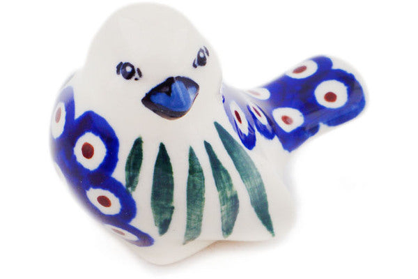 This Peacock Leaves 2" Bird Figurine was handmade and hand decorated in Boleslawiec, Poland by skilled artisans according to old traditional methods. This Polish stoneware is microwave, dishwasher, freezer, and oven safe up to 480°F. It does not contain lead or cadmium. It is part of the Peacock Leaves Collection.