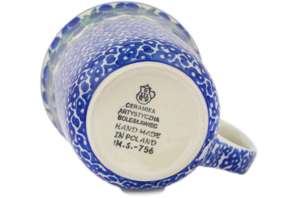 This Blueberry Fields Forever 17 oz Bistro Mug was handmade and hand decorated in Boleslawiec, Poland by skilled artisans according to old traditional methods. This Polish stoneware is microwave, dishwasher, freezer, and oven safe up to 480°F. It does not contain lead or cadmium. It is part of the Blueberry Fields Forever Collection.