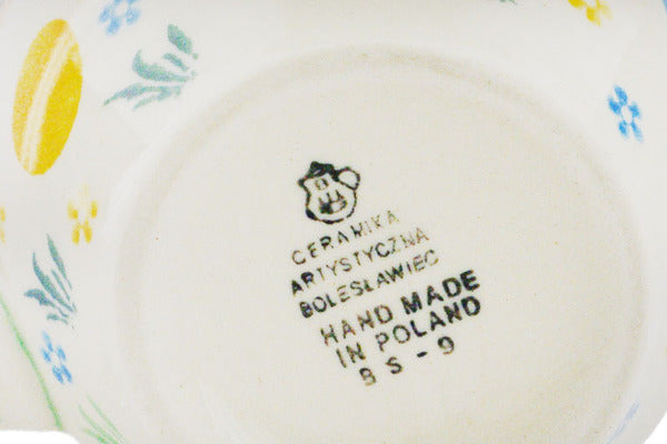 This Egg Hunt 17 oz Bistro Mug was handmade and hand decorated in Boleslawiec, Poland by skilled artisans according to old traditional methods. This Polish stoneware is microwave, dishwasher, freezer, and oven safe up to 480°F. It does not contain lead or cadmium. It is part of the Egg Hunt Collection.