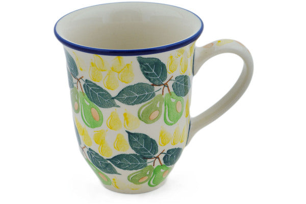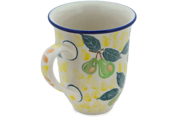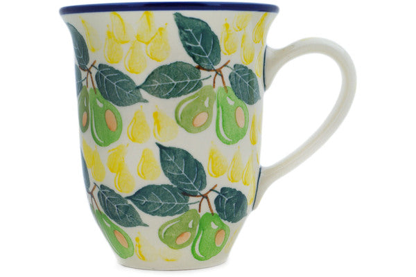 This Fresh Pear 17 oz Bistro Mug was handmade and hand decorated in Boleslawiec, Poland by skilled artisans according to old traditional methods. This Polish stoneware is microwave, dishwasher, freezer, and oven safe up to 480°F. It does not contain lead or cadmium. It is part of the Fresh Pear Collection.