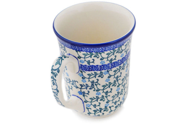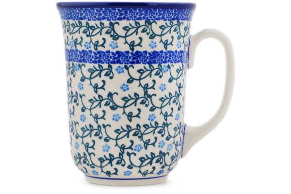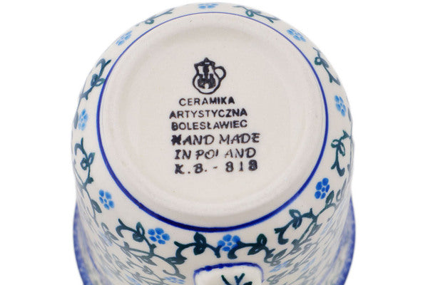 This Petite Blue Vine 17 oz Bistro Mug was handmade and hand decorated in Boleslawiec, Poland by skilled artisans according to old traditional methods. This Polish stoneware is microwave, dishwasher, freezer, and oven safe up to 480°F. It does not contain lead or cadmium. It is part of the Petite Blue Vine Collection.