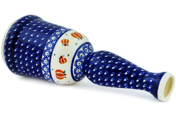 This Pumpkin Spice 23 oz Bottle was handmade and hand decorated in Boleslawiec, Poland by skilled artisans according to old traditional methods. This Polish stoneware is microwave, dishwasher, freezer, and oven safe up to 480°F. It does not contain lead or cadmium. It is part of the Pumpkin Spice Collection.