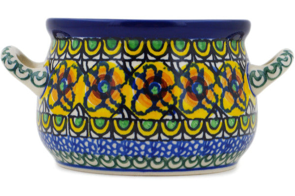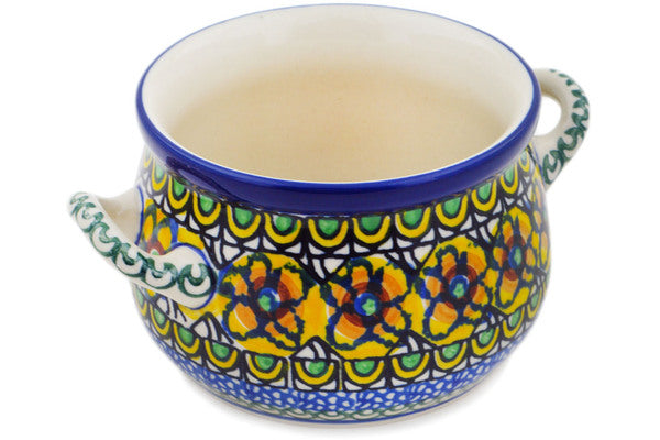 This Turkish Flowers 12 oz Bouillon Cup was handmade and hand decorated in Boleslawiec, Poland by skilled artisans according to old traditional methods. This is a Polish pottery Signature Unikat, which means that it has been hand painted with both sponges and brushes and it is signed by the artist who painted it. Unikat pieces are the most intricate works of art. Larger Unikat items take hours of very careful work to finish. This Polish stoneware is microwave, dishwasher, freezer, and oven safe up to 480°F. It does not contain lead or cadmium. It is part of the Turkish Flowers Collection.