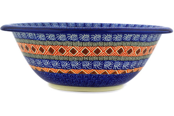 This Aztec Night 10" Bowl was handmade and hand decorated in Boleslawiec, Poland by skilled artisans according to old traditional methods. This Polish stoneware is microwave, dishwasher, freezer, and oven safe up to 480°F. It does not contain lead or cadmium. It is part of the Aztec Night Collection.