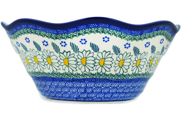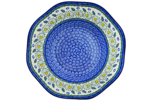 This Crazy Daisy 10" Scalloped Bowl was handmade and hand decorated in Boleslawiec, Poland by skilled artisans according to old traditional methods. This Polish stoneware is microwave, dishwasher, freezer, and oven safe up to 480°F. It does not contain lead or cadmium. It is part of the Crazy Daisy Collection.