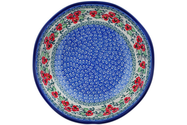 This Red Pansy 10" Scalloped Bowl was handmade and hand decorated in Boleslawiec, Poland by skilled artisans according to old traditional methods. This Polish stoneware is microwave, dishwasher, freezer, and oven safe up to 480°F. It does not contain lead or cadmium. It is part of the Red Pansy Collection.