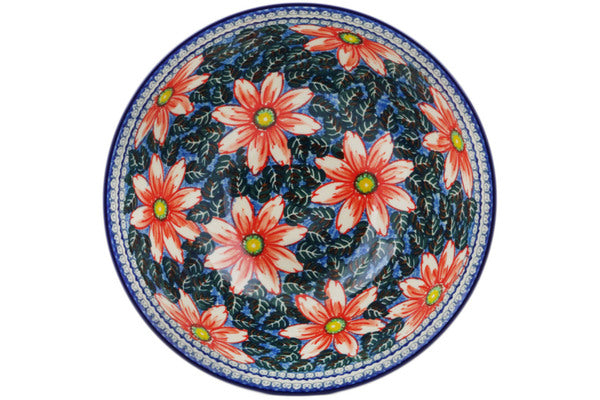 This Bold Susan 11" Bowl was handmade and hand decorated in Boleslawiec, Poland by skilled artisans according to old traditional methods. This is a Polish pottery Signature Unikat, which means that it has been hand painted with both sponges and brushes and it is signed by the artist who painted it. Unikat pieces are the most intricate works of art. Larger Unikat items take hours of very careful work to finish. This Polish stoneware is microwave, dishwasher, freezer, and oven safe up to 480°F. It does not contain lead or cadmium. It is part of the Bold Susan Collection.