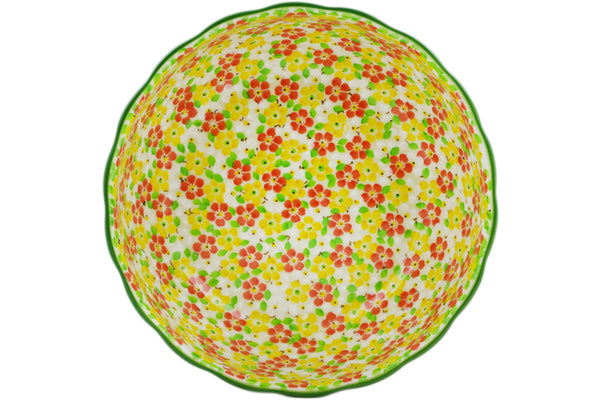 This Fertile Meadow 11" Fluted Bowl was handmade and hand decorated in Boleslawiec, Poland by skilled artisans according to old traditional methods. This is a Polish pottery Signature Unikat, which means that it has been hand painted with both sponges and brushes and it is signed by the artist who painted it. Unikat pieces are the most intricate works of art. Larger Unikat items take hours of very careful work to finish. This Polish stoneware is microwave, dishwasher, freezer, and oven safe up to 480°F. It does not contain lead or cadmium. It is part of the Fertile Meadow Collection.