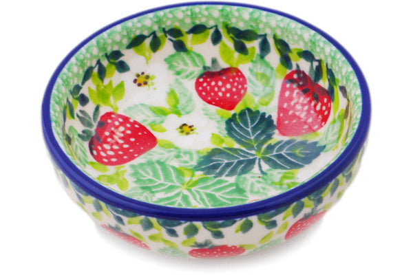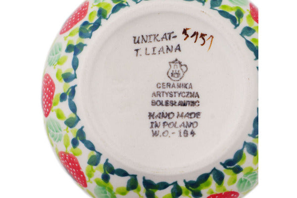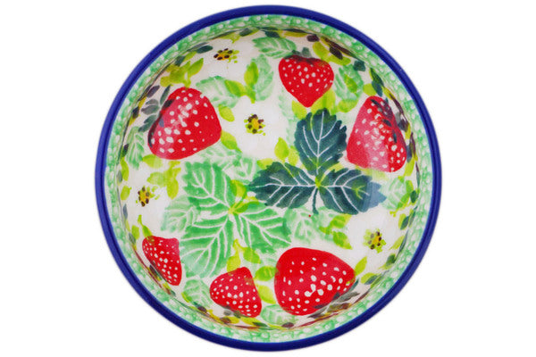 This Summer Strawberry 3" Bowl was handmade and hand decorated in Boleslawiec, Poland by skilled artisans according to old traditional methods. This is a Polish pottery Signature Unikat, which means that it has been hand painted with both sponges and brushes and it is signed by the artist who painted it. Unikat pieces are the most intricate works of art. Larger Unikat items take hours of very careful work to finish. This Polish stoneware is microwave, dishwasher, freezer, and oven safe up to 480°F. It does not contain lead or cadmium. It is part of the Summer Strawberry Collection.