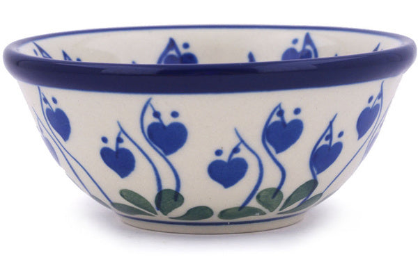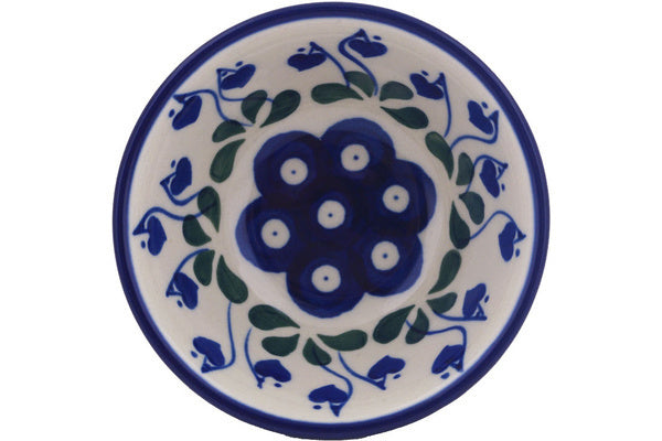 This Bleeding Heart Peacock 4" Bowl was handmade and hand decorated in Boleslawiec, Poland by skilled artisans according to old traditional methods. This Polish stoneware is microwave, dishwasher, freezer, and oven safe up to 480°F. It does not contain lead or cadmium. It is part of the Bleeding Heart Peacock Collection.