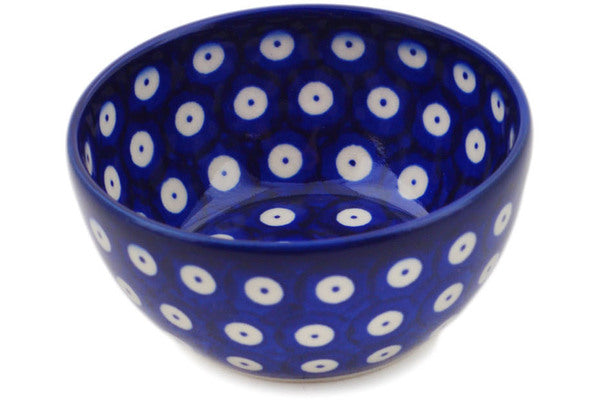 This Lovely Blue Eyes 4" Bowl was handmade and hand decorated in Boleslawiec, Poland by skilled artisans according to old traditional methods. This Polish stoneware is microwave, dishwasher, freezer, and oven safe up to 480°F. It does not contain lead or cadmium. It is part of the Lovely Blue Eyes Collection.