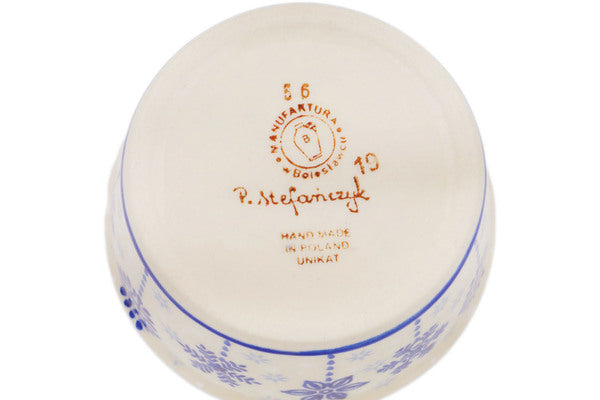This Winter Sights 4" Bowl was handmade and hand decorated in Boleslawiec, Poland by skilled artisans according to old traditional methods. This is a Polish pottery Signature Unikat, which means that it has been hand painted with both sponges and brushes and it is signed by the artist who painted it. Unikat pieces are the most intricate works of art. Larger Unikat items take hours of very careful work to finish. This Polish stoneware is microwave, dishwasher, freezer, and oven safe up to 480°F. It does not contain lead or cadmium. It is part of the Winter Sights Collection.