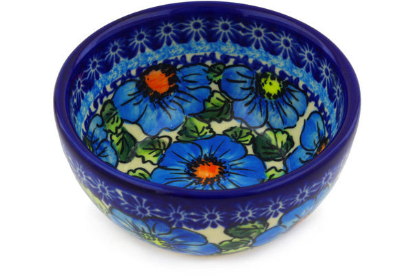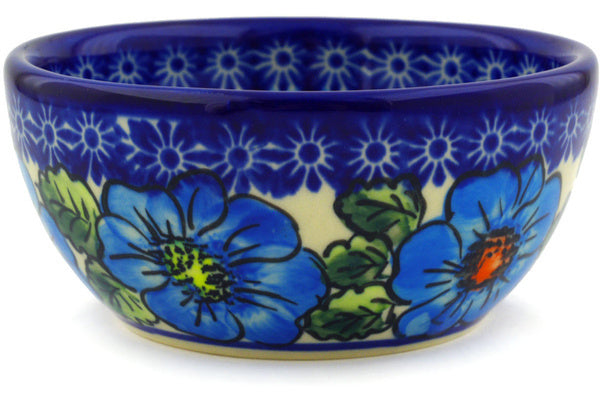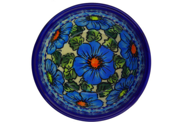 This Bold Blue Poppies 5" Bowl was handmade and hand decorated in Boleslawiec, Poland by skilled artisans according to old traditional methods. This is a Polish pottery Signature Unikat, which means that it has been hand painted with both sponges and brushes and it is signed by the artist who painted it. Unikat pieces are the most intricate works of art. Larger Unikat items take hours of very careful work to finish. This Polish stoneware is microwave, dishwasher, freezer, and oven safe up to 480°F. It does not contain lead or cadmium. It is part of the Bold Blue Poppies Collection.