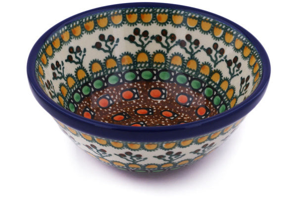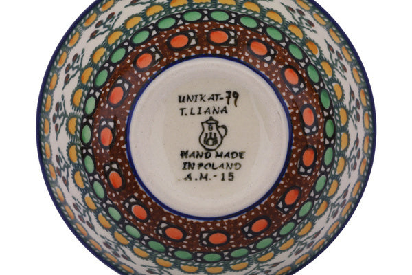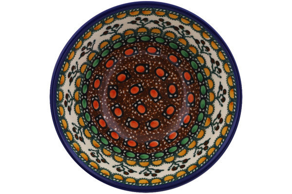 This Cranberry Medley 5" Bowl was handmade and hand decorated in Boleslawiec, Poland by skilled artisans according to old traditional methods. This is a Polish pottery Signature Unikat, which means that it has been hand painted with both sponges and brushes and it is signed by the artist who painted it. Unikat pieces are the most intricate works of art. Larger Unikat items take hours of very careful work to finish. This Polish stoneware is microwave, dishwasher, freezer, and oven safe up to 480°F. It does not contain lead or cadmium. It is part of the Cranberry Medley Collection.