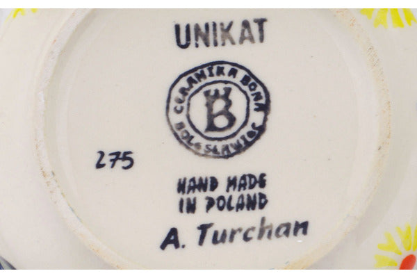 This Endless Summer 5" Bowl was handmade and hand decorated in Boleslawiec, Poland by skilled artisans according to old traditional methods. This is a Polish pottery Signature Unikat, which means that it has been hand painted with both sponges and brushes and it is signed by the artist who painted it. Unikat pieces are the most intricate works of art. Larger Unikat items take hours of very careful work to finish. This Polish stoneware is microwave, dishwasher, freezer, and oven safe up to 480°F. It does not contain lead or cadmium. It is part of the Endless Summer Collection.