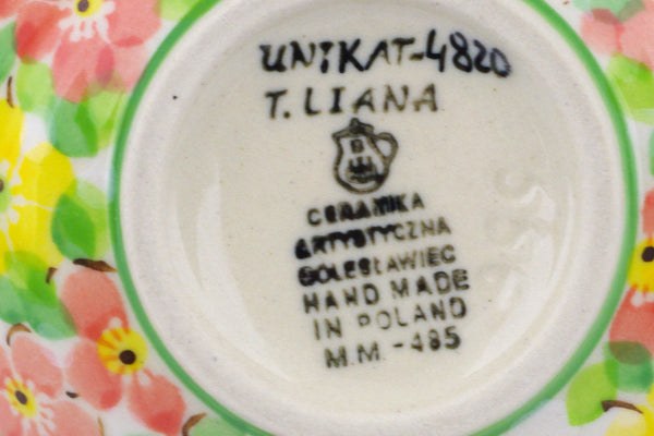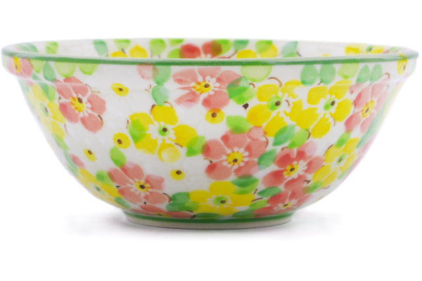This Fertile Meadow 5" Bowl was handmade and hand decorated in Boleslawiec, Poland by skilled artisans according to old traditional methods. This is a Polish pottery Signature Unikat, which means that it has been hand painted with both sponges and brushes and it is signed by the artist who painted it. Unikat pieces are the most intricate works of art. Larger Unikat items take hours of very careful work to finish. This Polish stoneware is microwave, dishwasher, freezer, and oven safe up to 480°F. It does not contain lead or cadmium. It is part of the Fertile Meadow Collection.