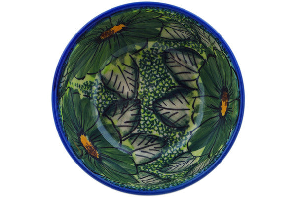 This Green Fantasy 5" Bowl was handmade and hand decorated in Boleslawiec, Poland by skilled artisans according to old traditional methods. This is a Polish pottery Signature Unikat, which means that it has been hand painted with both sponges and brushes and it is signed by the artist who painted it. Unikat pieces are the most intricate works of art. Larger Unikat items take hours of very careful work to finish. This Polish stoneware is microwave, dishwasher, freezer, and oven safe up to 480°F. It does not contain lead or cadmium. It is part of the Green Fantasy Collection.
