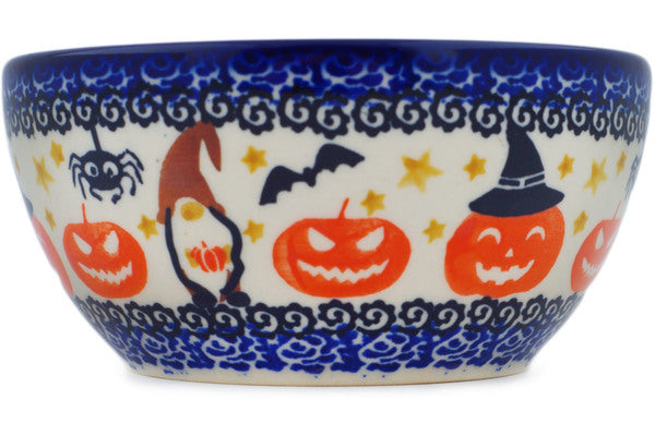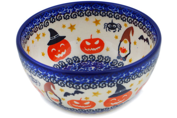 This Harvest Haunt 5" Bowl was handmade and hand decorated in Boleslawiec, Poland by skilled artisans according to old traditional methods. This Polish stoneware is microwave, dishwasher, freezer, and oven safe up to 480°F. It does not contain lead or cadmium. It is part of the Harvest Haunt Collection.