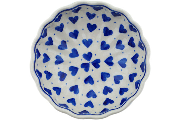 This Hearts Delight 5" Scalloped Fluted Bowl was handmade and hand decorated in Boleslawiec, Poland by skilled artisans according to old traditional methods. This Polish stoneware is microwave, dishwasher, freezer, and oven safe up to 480°F. It does not contain lead or cadmium. It is part of the Hearts Delight Collection.