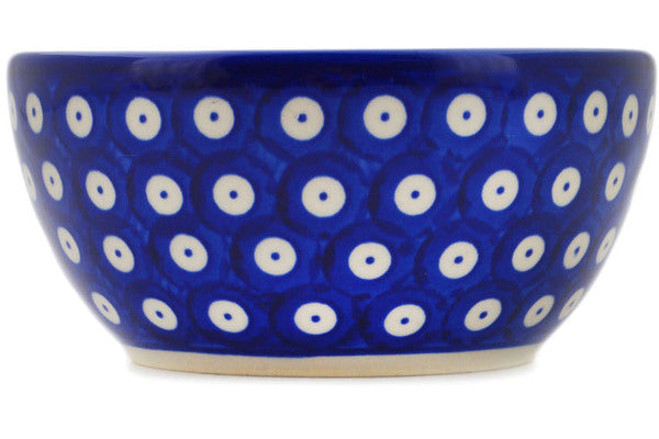This Lovely Blue Eyes 5" Bowl was handmade and hand decorated in Boleslawiec, Poland by skilled artisans according to old traditional methods. This Polish stoneware is microwave, dishwasher, freezer, and oven safe up to 480°F. It does not contain lead or cadmium. It is part of the Lovely Blue Eyes Collection.