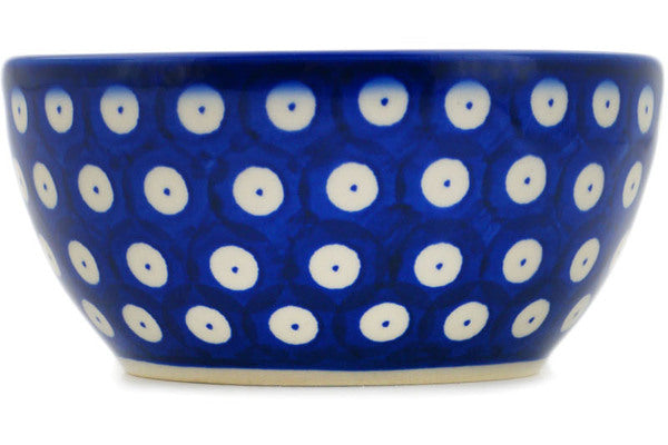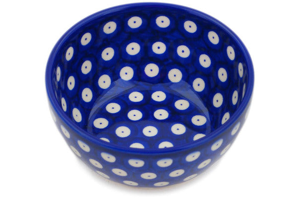 This Lovely Blue Eyes 5" Bowl was handmade and hand decorated in Boleslawiec, Poland by skilled artisans according to old traditional methods. This Polish stoneware is microwave, dishwasher, freezer, and oven safe up to 480°F. It does not contain lead or cadmium. It is part of the Lovely Blue Eyes Collection.