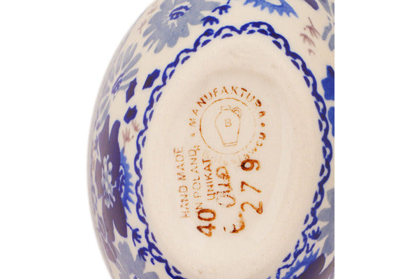 This Periwinkle Sweetness 5" Bowl was handmade and hand decorated in Boleslawiec, Poland by skilled artisans according to old traditional methods. This is a Polish pottery Signature Unikat, which means that it has been hand painted with both sponges and brushes and it is signed by the artist who painted it. Unikat pieces are the most intricate works of art. Larger Unikat items take hours of very careful work to finish. This Polish stoneware is microwave, dishwasher, freezer, and oven safe up to 480°F. It does not contain lead or cadmium. It is part of the Periwinkle Sweetness Collection.