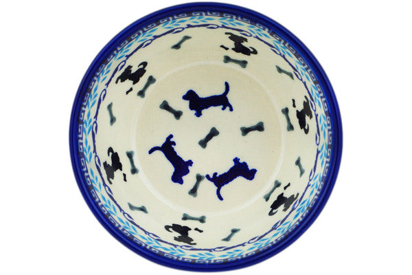 This Puppy Pleasure 5" Bowl was handmade and hand decorated in Boleslawiec, Poland by skilled artisans according to old traditional methods. This Polish stoneware is microwave, dishwasher, freezer, and oven safe up to 480°F. It does not contain lead or cadmium. It is part of the Puppy Pleasure Collection.