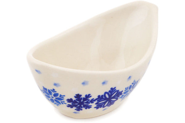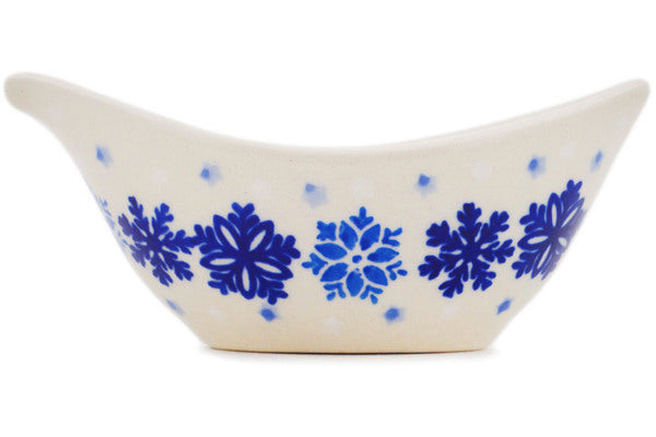 This Snowdrift 5" Bowl was handmade and hand decorated in Boleslawiec, Poland by skilled artisans according to old traditional methods. This Polish stoneware is microwave, dishwasher, freezer, and oven safe up to 480°F. It does not contain lead or cadmium. It is part of the Snowdrift Collection.