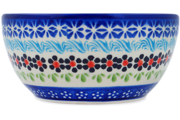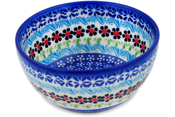 This Spring Country Trip 5" Bowl was handmade and hand decorated in Boleslawiec, Poland by skilled artisans according to old traditional methods. This Polish stoneware is microwave, dishwasher, freezer, and oven safe up to 480°F. It does not contain lead or cadmium. It is part of the Spring Country Trip Collection.