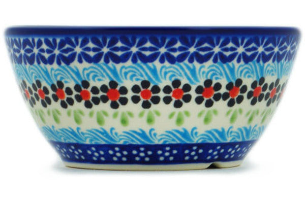 This Spring Country Trip 5" Bowl was handmade and hand decorated in Boleslawiec, Poland by skilled artisans according to old traditional methods. This Polish stoneware is microwave, dishwasher, freezer, and oven safe up to 480°F. It does not contain lead or cadmium. It is part of the Spring Country Trip Collection.