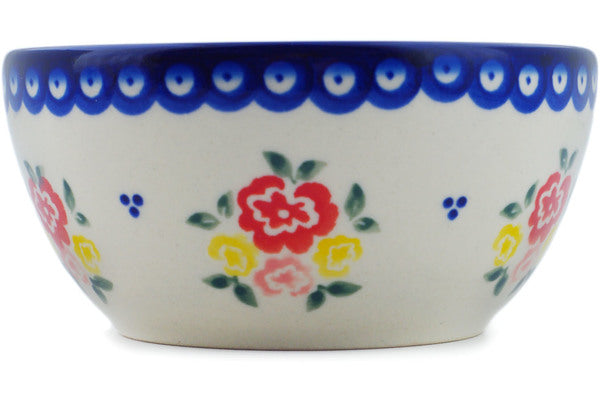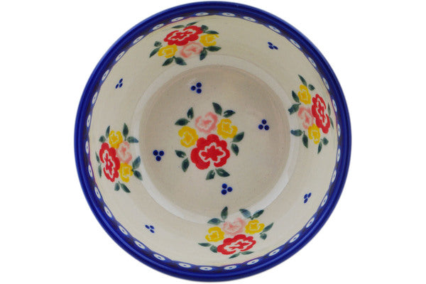 This Sunny Side Blooms 5" Bowl was handmade and hand decorated in Boleslawiec, Poland by skilled artisans according to old traditional methods. This Polish stoneware is microwave, dishwasher, freezer, and oven safe up to 480°F. It does not contain lead or cadmium. It is part of the Sunny Side Blooms Collection.
