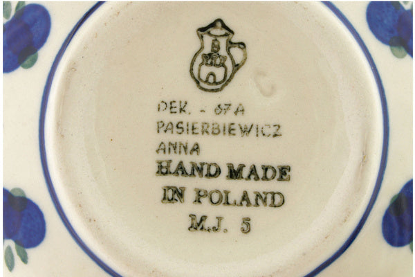 This Wild Blueberry 5" Bowl was handmade and hand decorated in Boleslawiec, Poland by skilled artisans according to old traditional methods. This Polish stoneware is microwave, dishwasher, freezer, and oven safe up to 480°F. It does not contain lead or cadmium. It is part of the Wild Blueberry Collection.