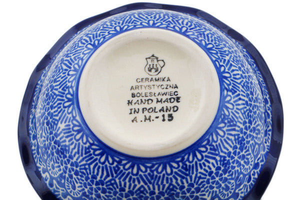 This Winter Frost 5" Bowl was handmade and hand decorated in Boleslawiec, Poland by skilled artisans according to old traditional methods. This Polish stoneware is microwave, dishwasher, freezer, and oven safe up to 480°F. It does not contain lead or cadmium. It is part of the Winter Frost Collection.
