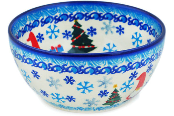 This Winter Gnome 5" Bowl was handmade and hand decorated in Boleslawiec, Poland by skilled artisans according to old traditional methods. This Polish stoneware is microwave, dishwasher, freezer, and oven safe up to 480°F. It does not contain lead or cadmium. It is part of the Winter Gnome Collection.