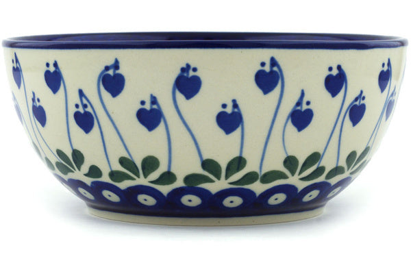This Bleeding Heart Peacock 6" Bowl was handmade and hand decorated in Boleslawiec, Poland by skilled artisans according to old traditional methods. This Polish stoneware is microwave, dishwasher, freezer, and oven safe up to 480°F. It does not contain lead or cadmium. It is part of the Bleeding Heart Peacock Collection.