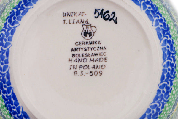 This Bright Carnations 6" Bowl was handmade and hand decorated in Boleslawiec, Poland by skilled artisans according to old traditional methods. This is a Polish pottery Signature Unikat, which means that it has been hand painted with both sponges and brushes and it is signed by the artist who painted it. Unikat pieces are the most intricate works of art. Larger Unikat items take hours of very careful work to finish. This Polish stoneware is microwave, dishwasher, freezer, and oven safe up to 480°F. It does not contain lead or cadmium. It is part of the Bright Carnations Collection.
