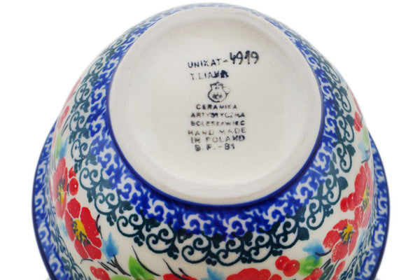 This Cherry Colored Florals 6" Bowl was handmade and hand decorated in Boleslawiec, Poland by skilled artisans according to old traditional methods. This is a Polish pottery Signature Unikat, which means that it has been hand painted with both sponges and brushes and it is signed by the artist who painted it. Unikat pieces are the most intricate works of art. Larger Unikat items take hours of very careful work to finish. This Polish stoneware is microwave, dishwasher, freezer, and oven safe up to 480°F. It does not contain lead or cadmium. It is part of the Cherry Colored Florals Collection.
