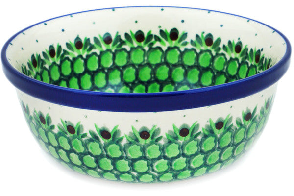 This Cobblestone Path 6" Bowl was handmade and hand decorated in Boleslawiec, Poland by skilled artisans according to old traditional methods. This is a Polish pottery Signature Unikat, which means that it has been hand painted with both sponges and brushes and it is signed by the artist who painted it. Unikat pieces are the most intricate works of art. Larger Unikat items take hours of very careful work to finish. This Polish stoneware is microwave, dishwasher, freezer, and oven safe up to 480°F. It does not contain lead or cadmium. It is part of the Cobblestone Path Collection.