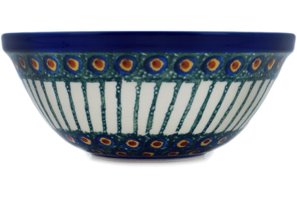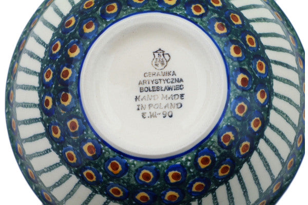 This Emerald Peacock 6" Bowl was handmade and hand decorated in Boleslawiec, Poland by skilled artisans according to old traditional methods. This Polish stoneware is microwave, dishwasher, freezer, and oven safe up to 480°F. It does not contain lead or cadmium. It is part of the Emerald Peacock Collection.