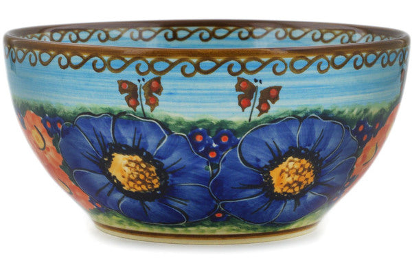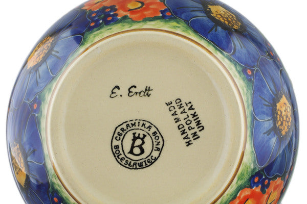 This Blue Garden 6" Bowl was handmade and hand decorated in Boleslawiec, Poland by skilled artisans according to old traditional methods. This is a Polish pottery Signature Unikat, which means that it has been hand painted with both sponges and brushes and it is signed by the artist who painted it. Unikat pieces are the most intricate works of art. Larger Unikat items take hours of very careful work to finish. This Polish stoneware is microwave, dishwasher, freezer, and oven safe up to 480°F. It does not contain lead or cadmium. It is part of the Blue Garden Collection.