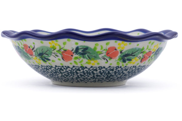 This Hidden Pansy 6" Scalloped Bowl was handmade and hand decorated in Boleslawiec, Poland by skilled artisans according to old traditional methods. This is a Polish pottery Signature Unikat, which means that it has been hand painted with both sponges and brushes and it is signed by the artist who painted it. Unikat pieces are the most intricate works of art. Larger Unikat items take hours of very careful work to finish. This Polish stoneware is microwave, dishwasher, freezer, and oven safe up to 480°F. It does not contain lead or cadmium. It is part of the Hidden Pansy Collection.