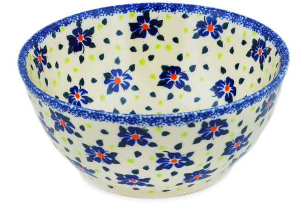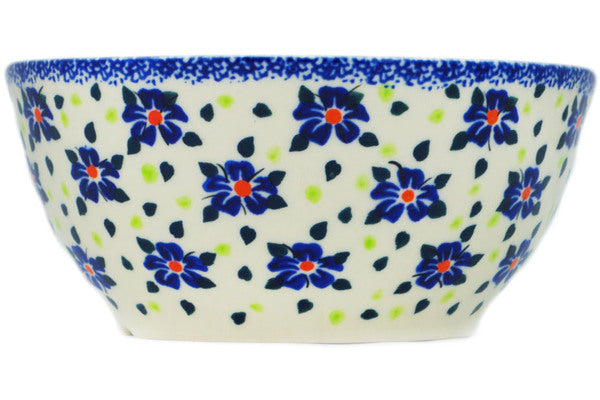 This Hope Flowes 6" Bowl was handmade and hand decorated in Boleslawiec, Poland by skilled artisans according to old traditional methods. This is a Polish pottery Signature Unikat, which means that it has been hand painted with both sponges and brushes and it is signed by the artist who painted it. Unikat pieces are the most intricate works of art. Larger Unikat items take hours of very careful work to finish. This Polish stoneware is microwave, dishwasher, freezer, and oven safe up to 480°F. It does not contain lead or cadmium. It is part of the Hope Flowes Collection.