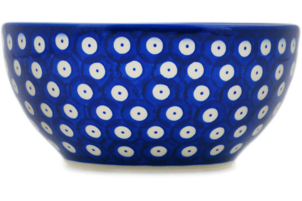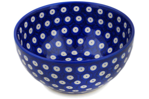 This Lovely Blue Eyes 6" Bowl was handmade and hand decorated in Boleslawiec, Poland by skilled artisans according to old traditional methods. This Polish stoneware is microwave, dishwasher, freezer, and oven safe up to 480°F. It does not contain lead or cadmium. It is part of the Lovely Blue Eyes Collection.