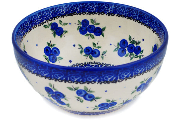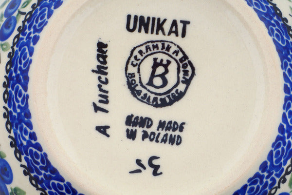 This Lovely Blueberries 6" Bowl was handmade and hand decorated in Boleslawiec, Poland by skilled artisans according to old traditional methods. This Polish stoneware is microwave, dishwasher, freezer, and oven safe up to 480°F. It does not contain lead or cadmium. It is part of the Lovely Blueberries Collection.
