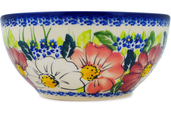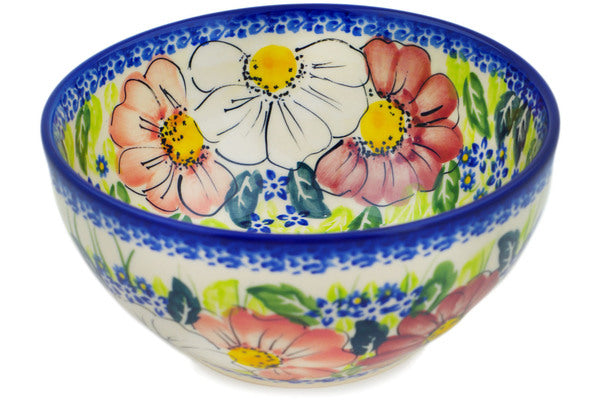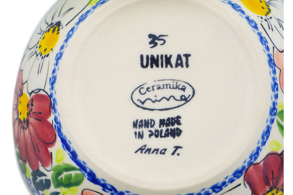 This Maroon Blossoms 6" Bowl was handmade and hand decorated in Boleslawiec, Poland by skilled artisans according to old traditional methods. This is a Polish pottery Signature Unikat, which means that it has been hand painted with both sponges and brushes and it is signed by the artist who painted it. Unikat pieces are the most intricate works of art. Larger Unikat items take hours of very careful work to finish. This Polish stoneware is microwave, dishwasher, freezer, and oven safe up to 480°F. It does not contain lead or cadmium. It is part of the Maroon Blossoms Collection.