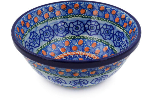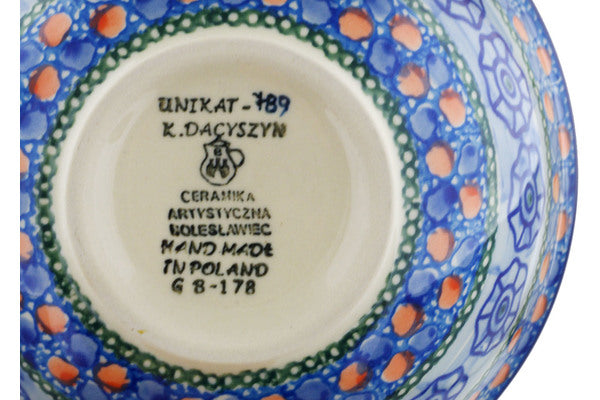 This Midnight Tango 6" Bowl was handmade and hand decorated in Boleslawiec, Poland by skilled artisans according to old traditional methods. This is a Polish pottery Signature Unikat, which means that it has been hand painted with both sponges and brushes and it is signed by the artist who painted it. Unikat pieces are the most intricate works of art. Larger Unikat items take hours of very careful work to finish. This Polish stoneware is microwave, dishwasher, freezer, and oven safe up to 480°F. It does not contain lead or cadmium. It is part of the Midnight Tango Collection.